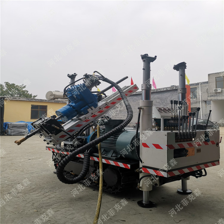 架柱式液壓回轉鉆機,它由主機,操作臺及泵站三部分組成,各部分之間通過膠管連接,主機部分由相互配合的立柱總成,托架總成及回轉總成構成.本實用新型比類似產品重量輕,鉆孔速度快,精度高,定位準確,操作簡便,維修費用極低,可以鉆不同方位,不同角度的孔,適用于各種復雜的地理環境及工作面.
